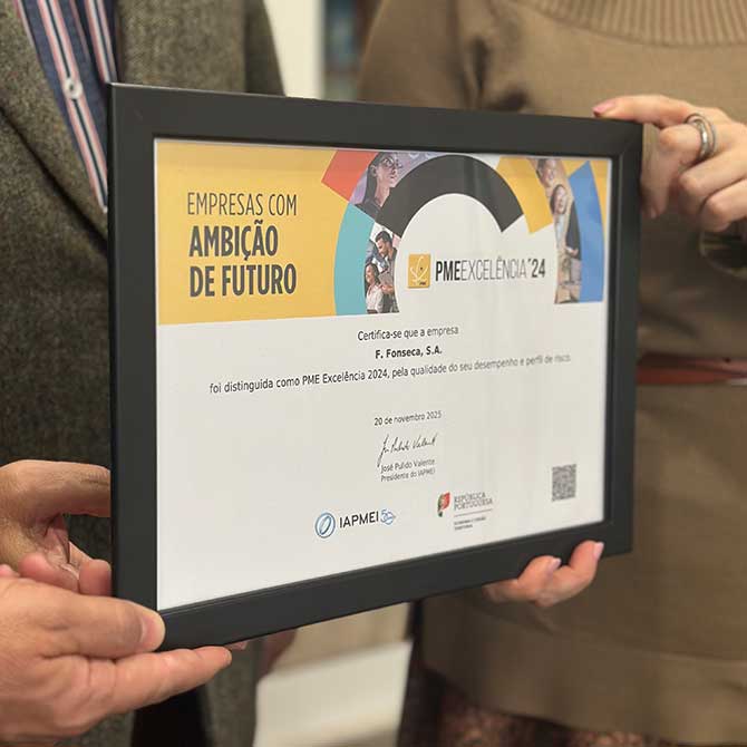 F.Fonseca has once again been distinguished with the PME Excelência 2024, a recognition awarded by IAPMEI to companies with the best financial performance and a balanced risk profile in Portugal.