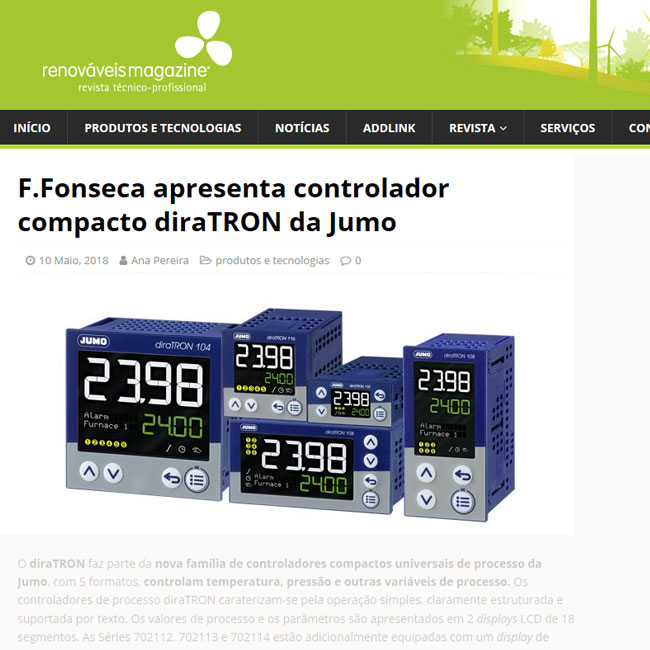 WebSite Renováveis Magazine - F.Fonseca presents Compact controller diraTRON from Jumo