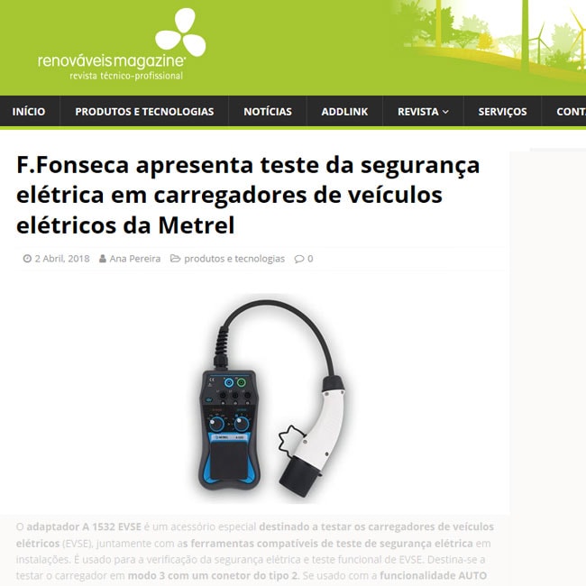 WebSite Renováveis Magazine - F.Fonseca presents electrical safety tester for electrical vehicle battery chargers – Metrel