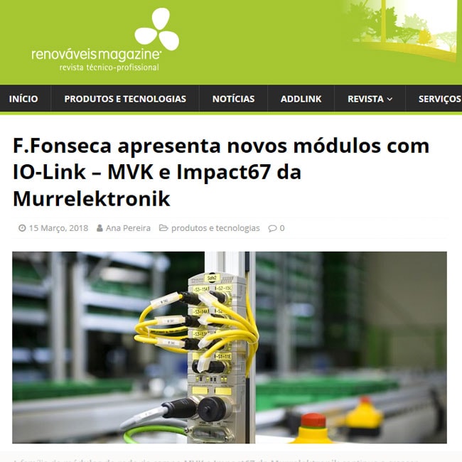 WebSite Renováveis Magazine - F.Fonseca presents IO-Link modules – MVK and Impact67 – Murrelektronik