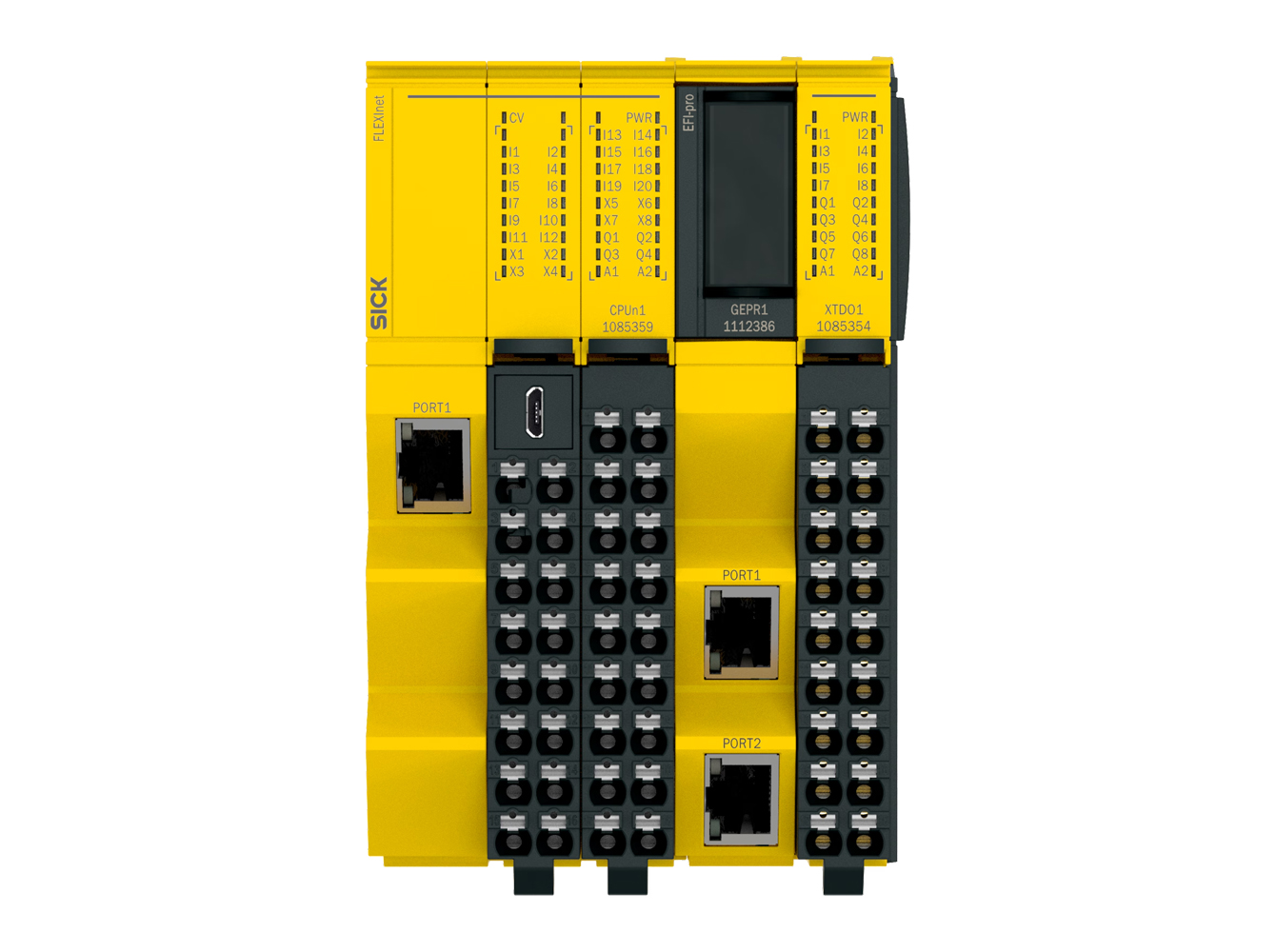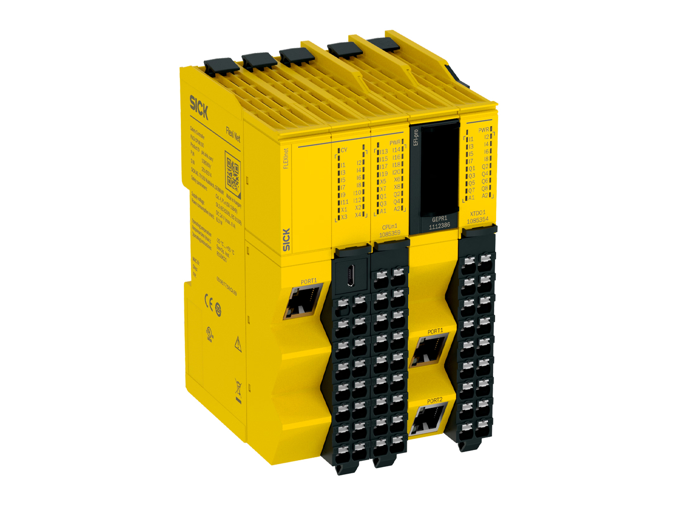 Flexi Net from SICK is a powerful safety controller for modern machine architectures. The scalable control architecture enables the addition of up to 12 Flexi I/O modules and the creation of a secure machine network along the production line. With up to 512 TÜV-certified function blocks and a minimum logic cycle time of 4 ms, Flexi Net offers high performance up to performance level e (PL e, EN ISO 13849-1). Sensors can be integrated into the safety controller in a variety of ways – thanks to EFI-pro and Flexi Loop. Safe Motion via integrated HTL inputs and application-specific function blocks meets the requirements of mobile robots. Live diagnostics, together with central configuration via the Safety Designer, ensure fast commissioning and easy maintenance.