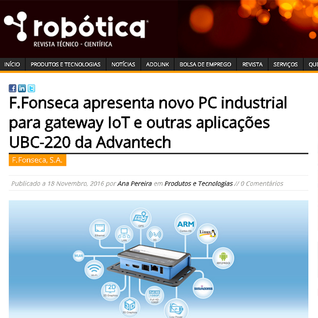 F.Fonseca apresenta novo PC industrial para gateway IoT e outras aplicações UBC-220 da Advantech