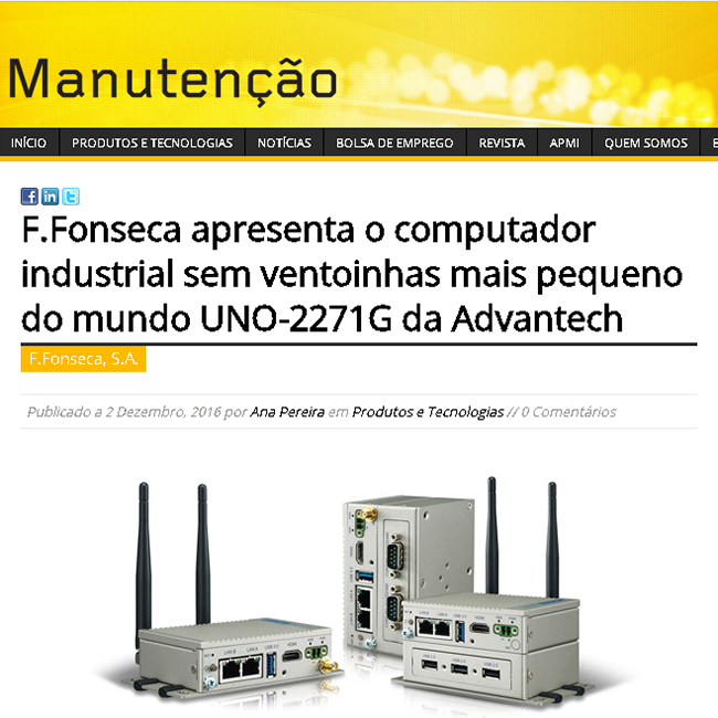 F.Fonseca apresenta o computador industrial sem ventoinhas mais pequeno do mundo UNO-2271G da Advantech
