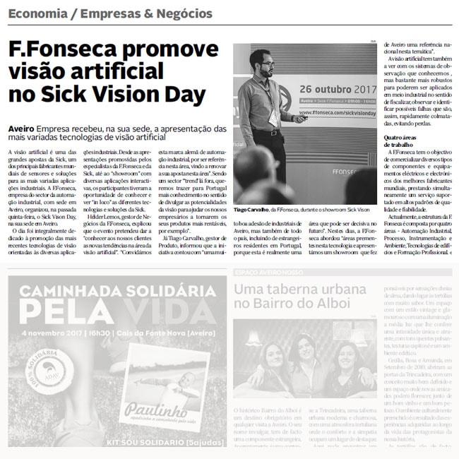 A visão artificial é uma das grandes apostas da Sick, um dos principais fabricantes mundiais de sensores e soluções para as mais variadas aplicações industriais. A F.Fonseca, empresa do sector da automação industrial, com sede em Aveiro, organizou, na passada quinta-feira, o Sick Vison Day, na sua sede em Aveiro.