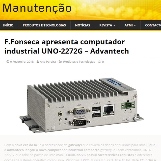 Manutenção Website - F.Fonseca apresenta computador industrial UNO-2272G – Advantech