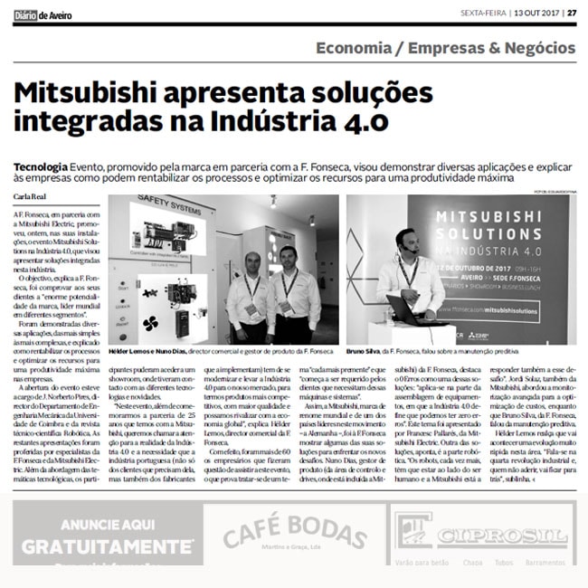 A F. Fonseca, em parceria com a Mitsubishi Electric, promoveu, ontem, nas suas instalações, o evento Mitsubishi Solutions na Indústria 4.0, que visou apresentar soluções integradas nesta indústria.