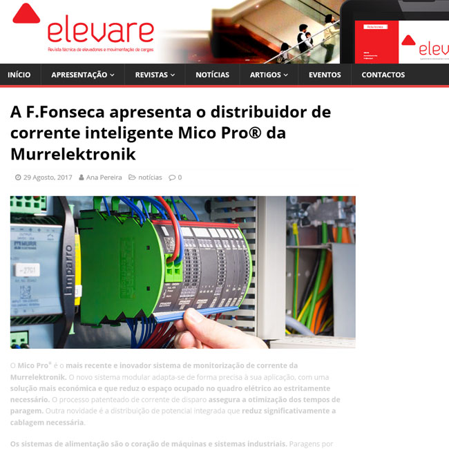 WebSite Elevare - A F.Fonseca apresenta o distribuidor de corrente inteligente Mico Pro® da Murrelektronik