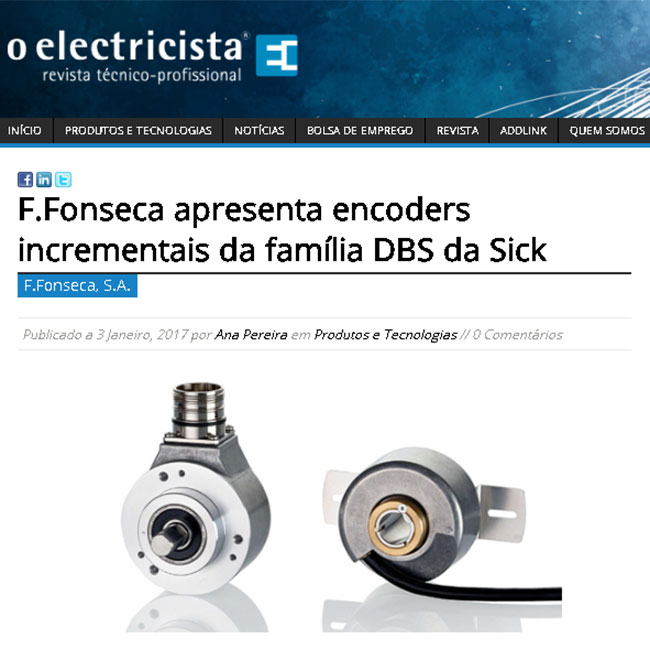 Website O electricista - F.Fonseca apresenta encoders incrementais da família DBS da Sick