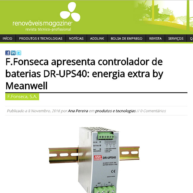 Website Renováveis Magazine - F.Fonseca apresenta controlador de baterias DR-UPS40: energia extra by Meanwell