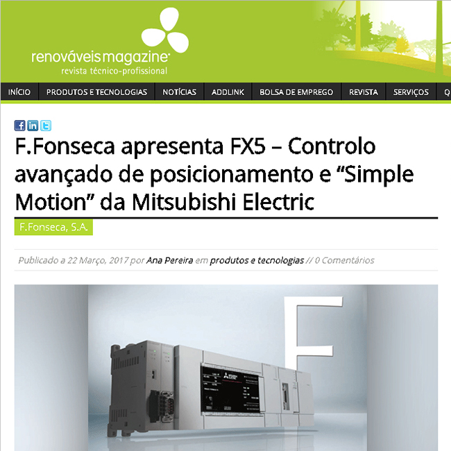 WebSite Renováveis Magazine - F.Fonseca apresenta FX5 – Controlo avançado de posicionamento e “Simple Motion” da Mitsubishi Electric