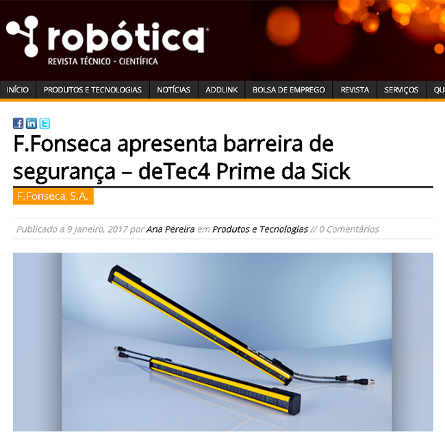 Website Robótica - F.Fonseca apresenta barreira de segurança – deTec4 Prime da Sick