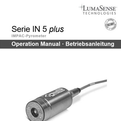 O pirómetro IN 5 plus tem uma saída analógica de 0/4 a 20mA, interface digital RS232 ou RS485 e um sistema de mira ótica laser. A gama de temperatura é de -32 °C a 900 °C.