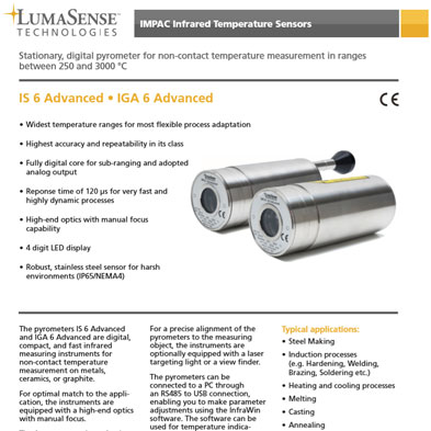 O pirómetro ISR 6-TI Advanced da Impac apresenta a precisão de um pirómetro de 2 cores e a imagem térmica com apenas um único sistema de medição de temperatura sem contacto.