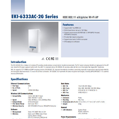 Com mecanismos de segurança avançados integrados, incluindo WPA/WPA2-Enterprise, autenticação IEEE 802.1X e protocolos de encriptação robustos, o EKI-6333AC-2G garante comunicações sem fios seguras em aplicações de automação industrial e infraestruturas críticas.