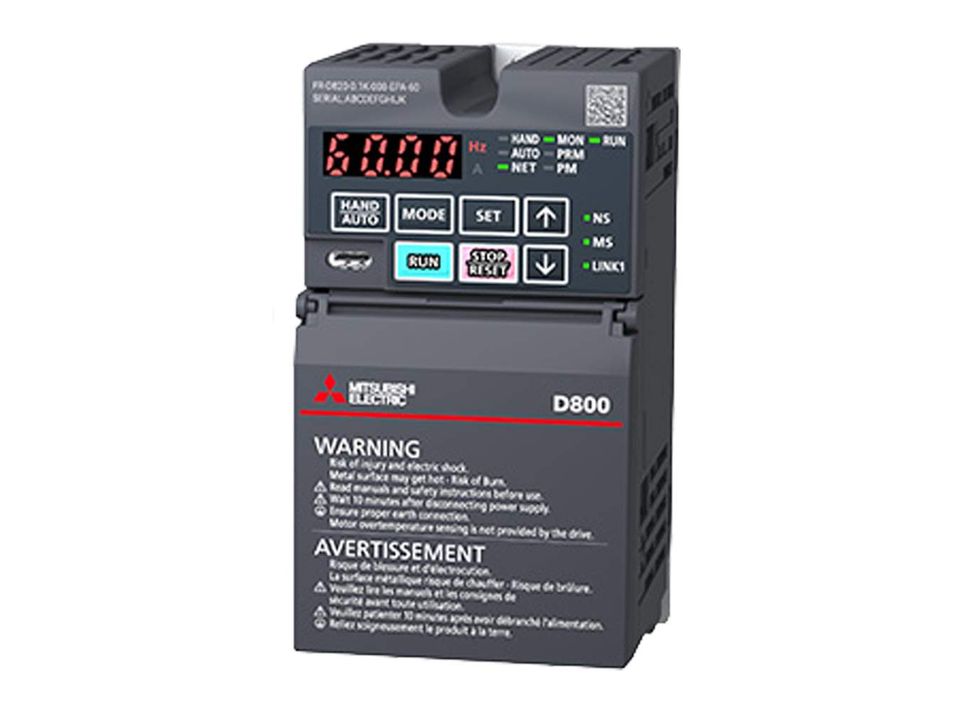 Baseando-se na comprovada fiabilidade da série FR-D700, o FR-D800 introduz funcionalidades avançadas como conectividade para configuração de parâmetros, diagnóstico de manutenção preventiva incorporado e compatibilidade com motores de indução e motores de ímanes permanentes.
